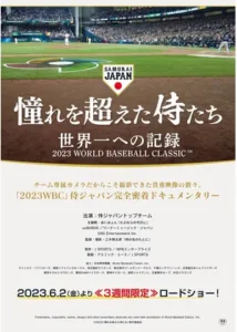 2021年12月、栗山英樹が侍ジャパントップチーム監督に就任。世界一奪還を目標に掲げ、2023年WBCへ向けた挑戦が始まる。代表選手選考から宮崎合宿、本大会のベンチやロッカーまでを専属カメラが完全密着。選手たちの葛藤や覚悟、歓喜の瞬間を通して、憧れを超えた史上最強の侍ジャパンが世界一へ至る軌跡を描くドキュメンタリー。